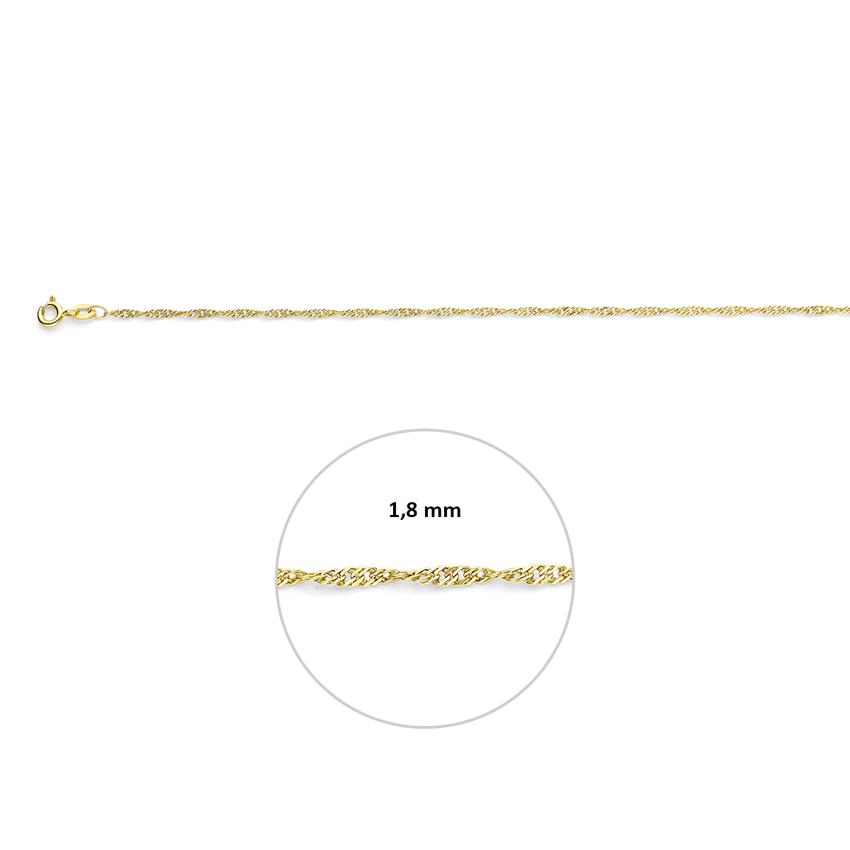9k Geel kleurig lengteartikelen met een singapore schakel van 1.8mm.