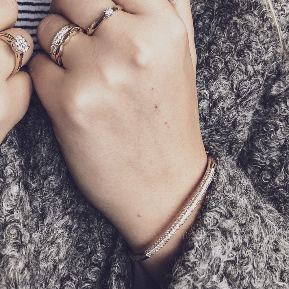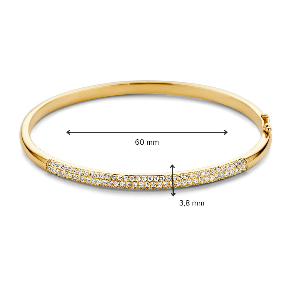 Prachtige massieve, geelgouden slavenarmband met briljant in pavezetting.