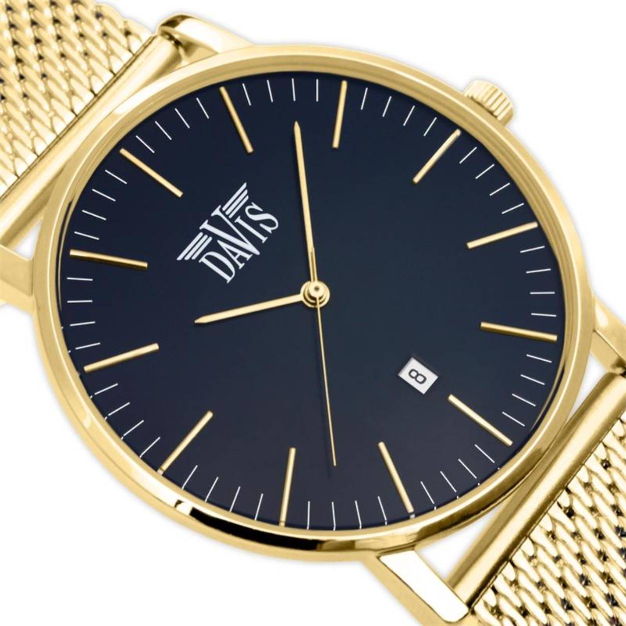 Met de blauwe wijzerplaat en goudkleurige wijzers is dit Davis horloge een uitstekende aanvulling op uw horloge collectie.