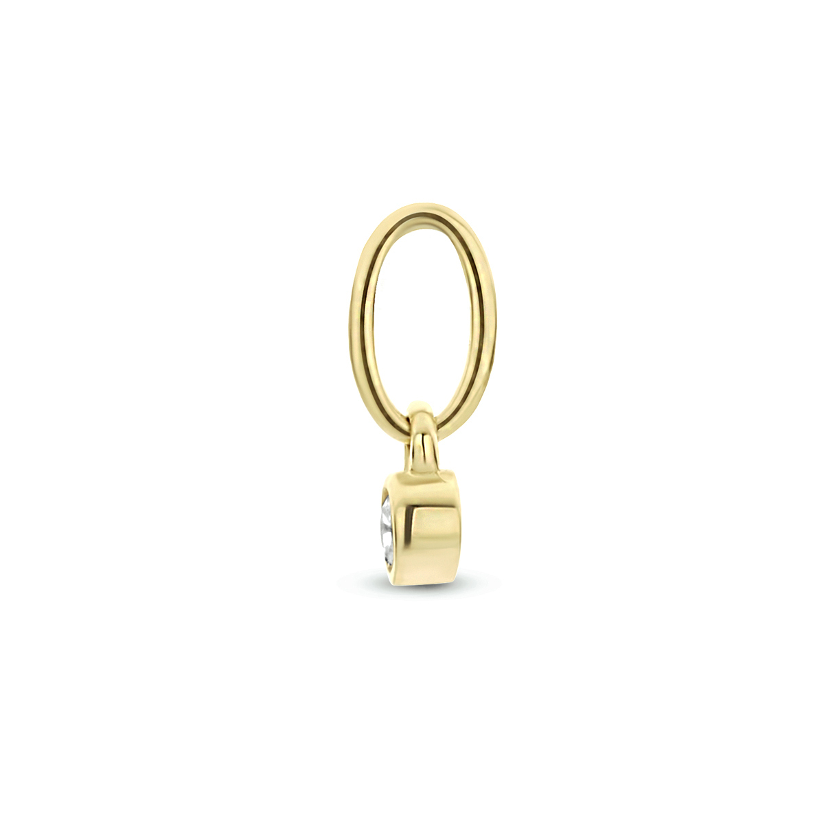 14k Geelgouden hanger uitgevoerd met een schitterende zirkonia. De hanger heeft een totale hoogte van 7mm en een breedte van 2mm.