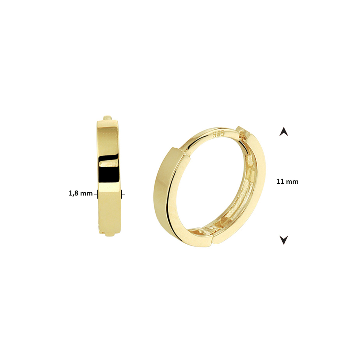 14k Geelgouden klapoorringen. De oorringen hebben een afmeting van 10x1.8mm.