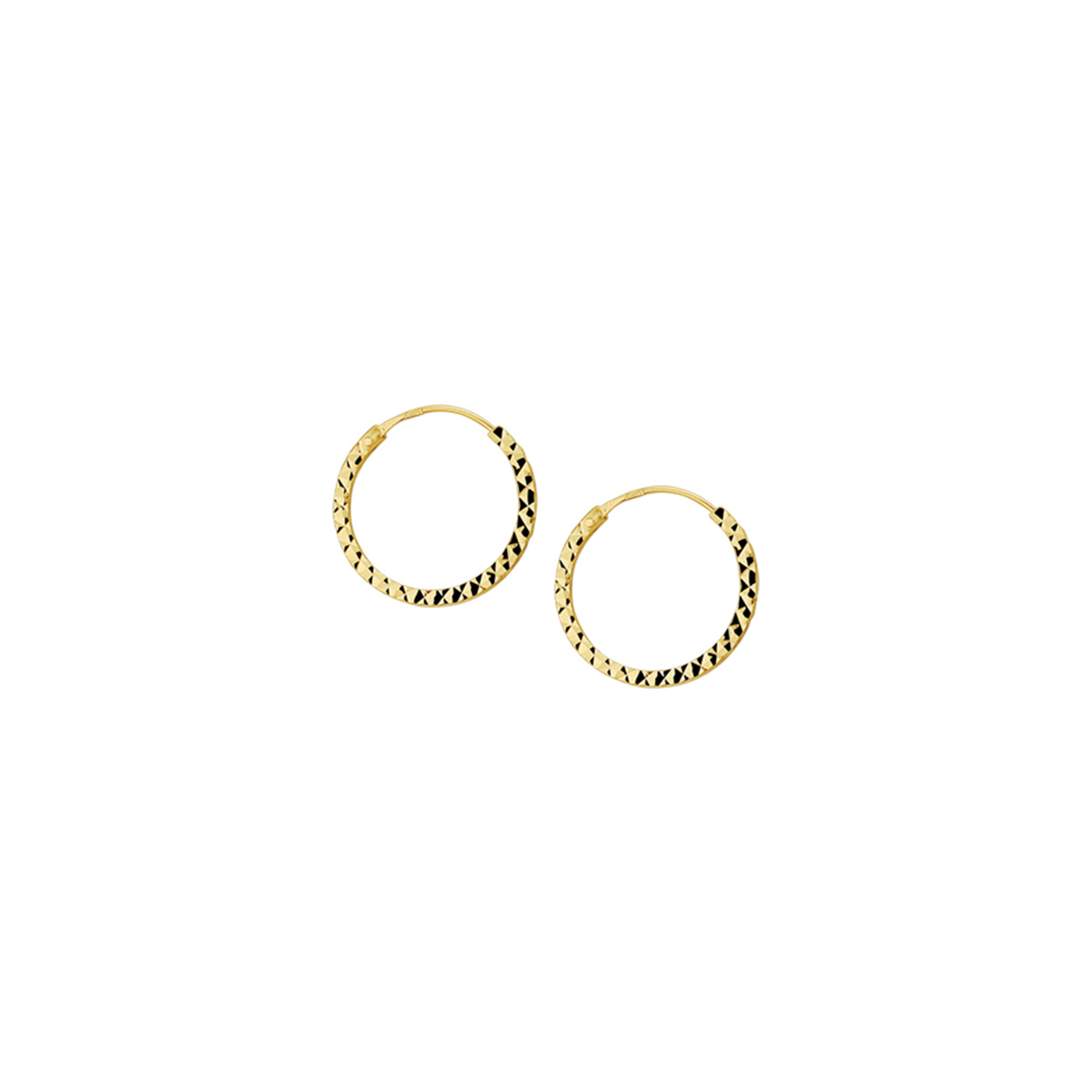 Geelgouden oorringen met een gediamanteerde bewerking.