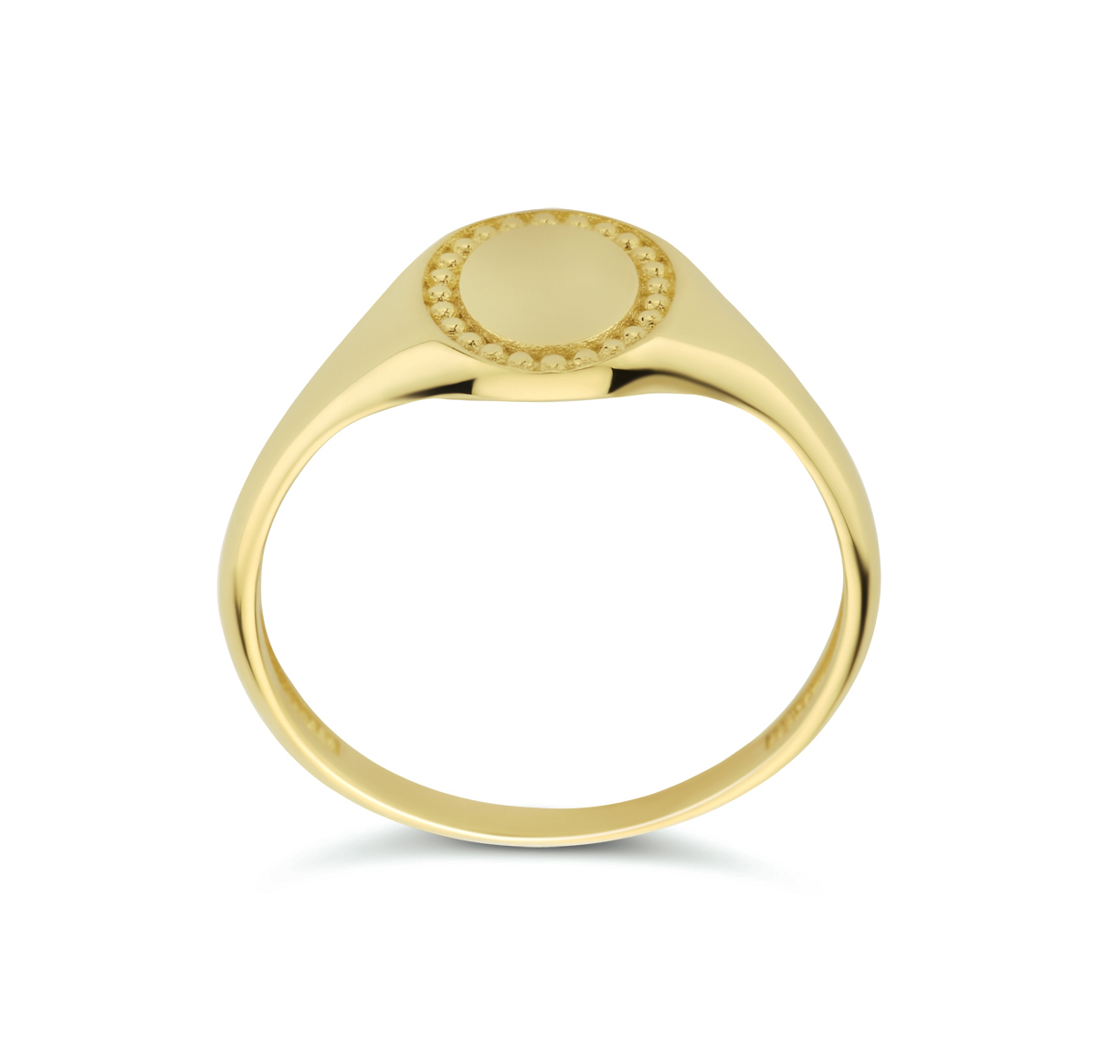 14k Geelgouden graveerring. De ring heeft een breedte van 9.3 mm.