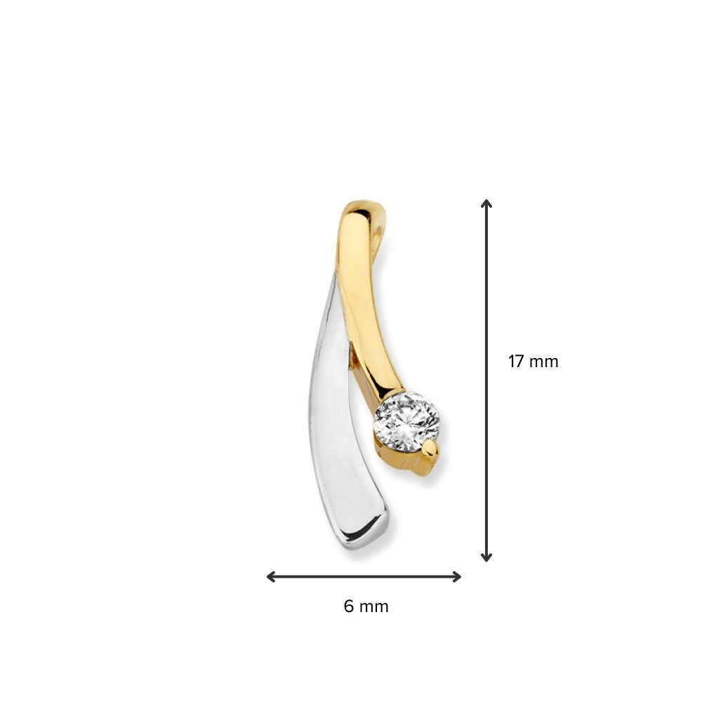 Bicolor wit- en geelgouden hanger met zirkonia.