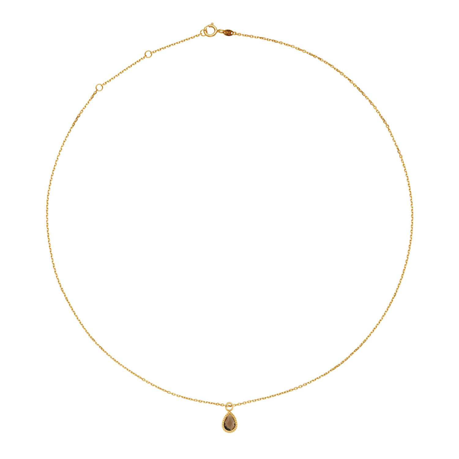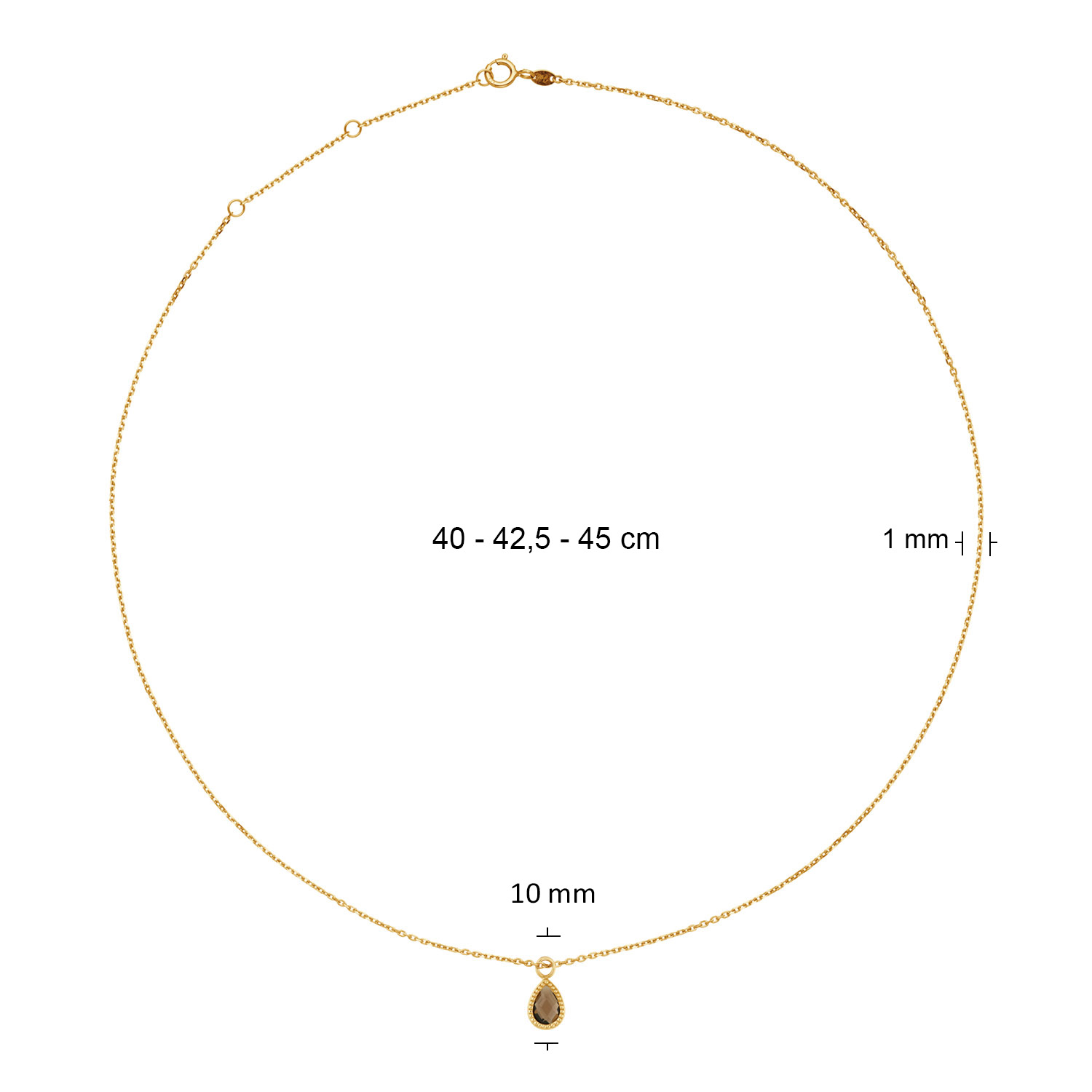 Een klassieke hanger met een echte Rookkwarts edelsteen aan een 14 karaat gouden ketting. Rookkwarts is een bruine tot zwarte variëteit van de kwarts en staat  bekend om zijn aardende en beschermende eigenschappen.