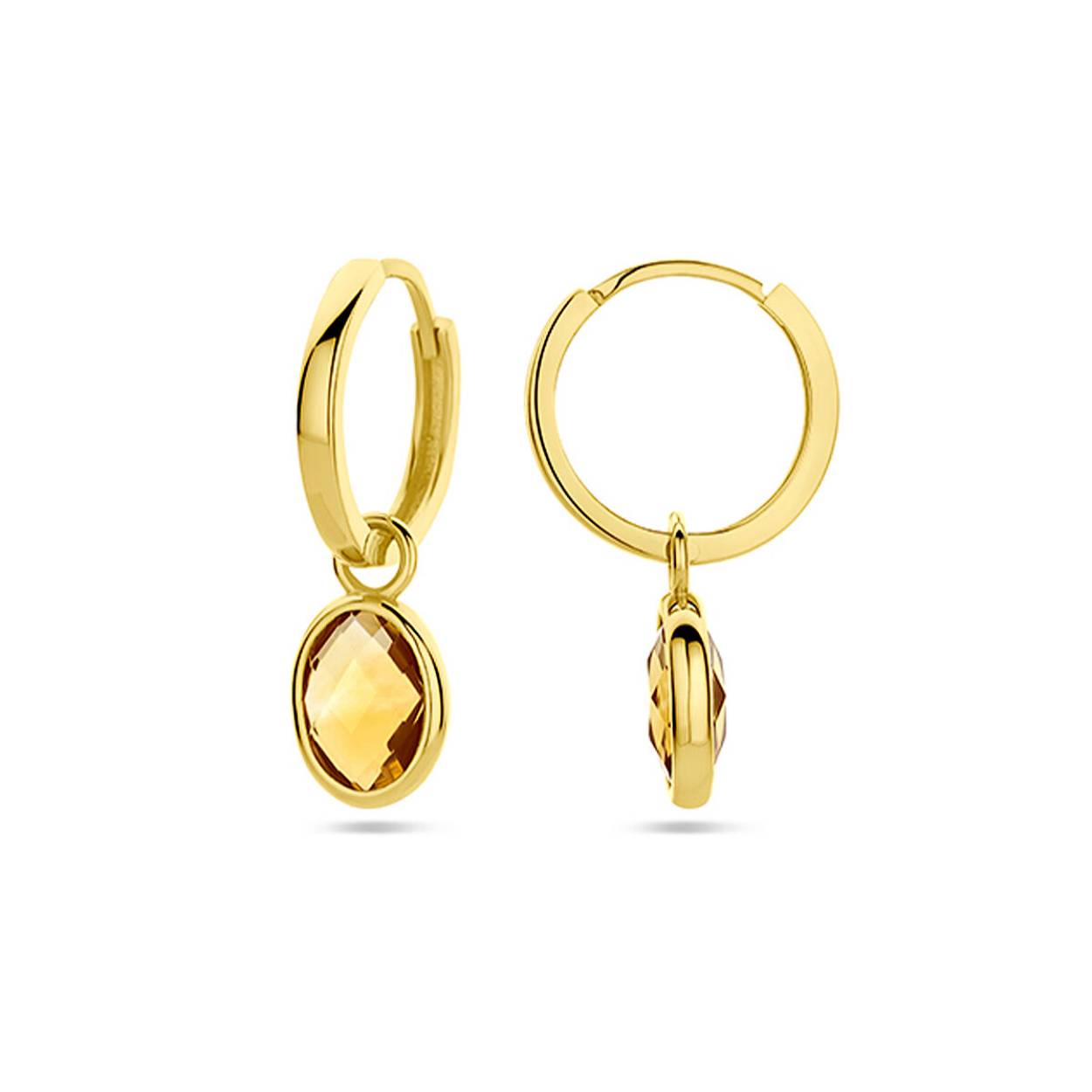 14k Geelgouden klapoorringen uitgevoerd met citrien. De oorringen hebben een totale hoogte van 22mm