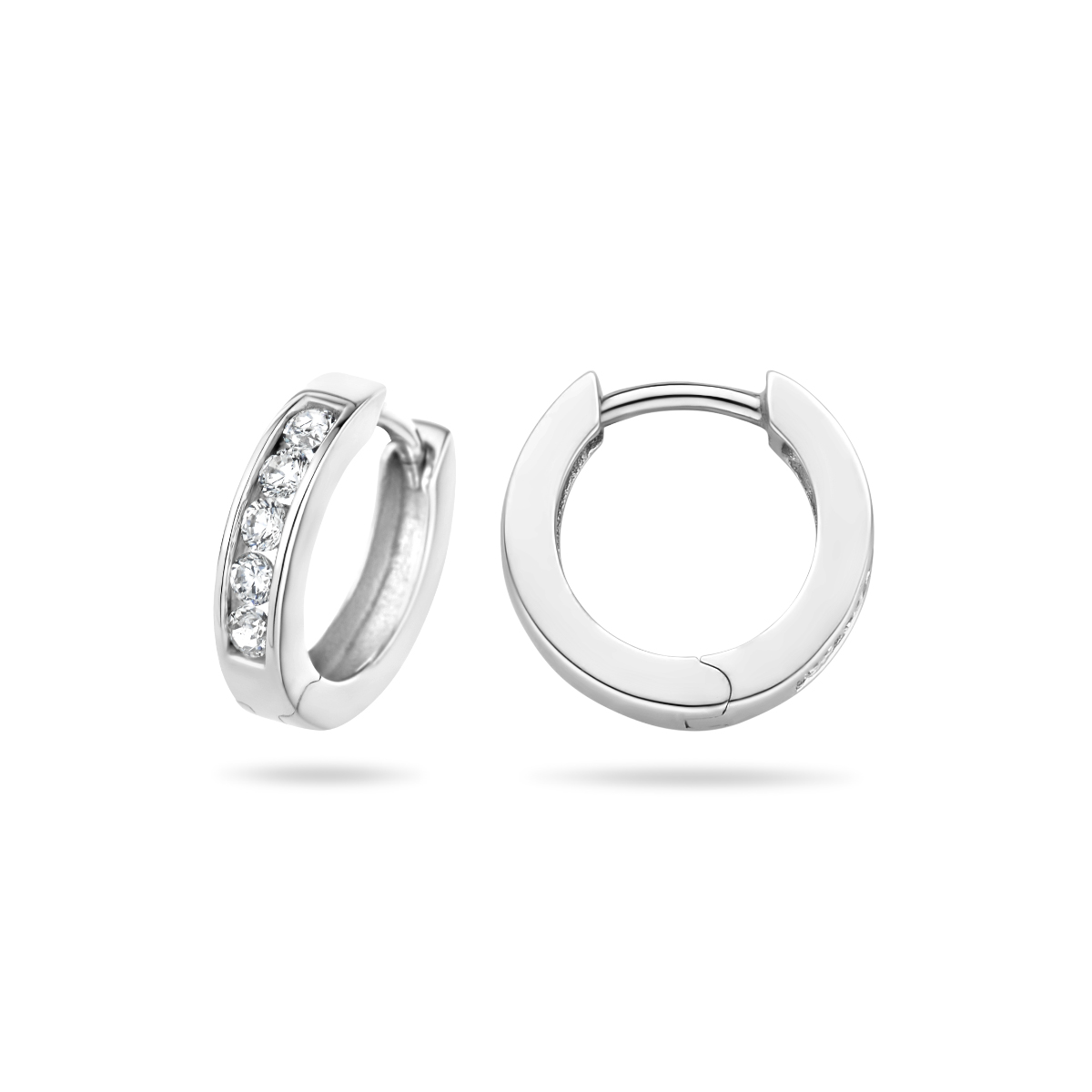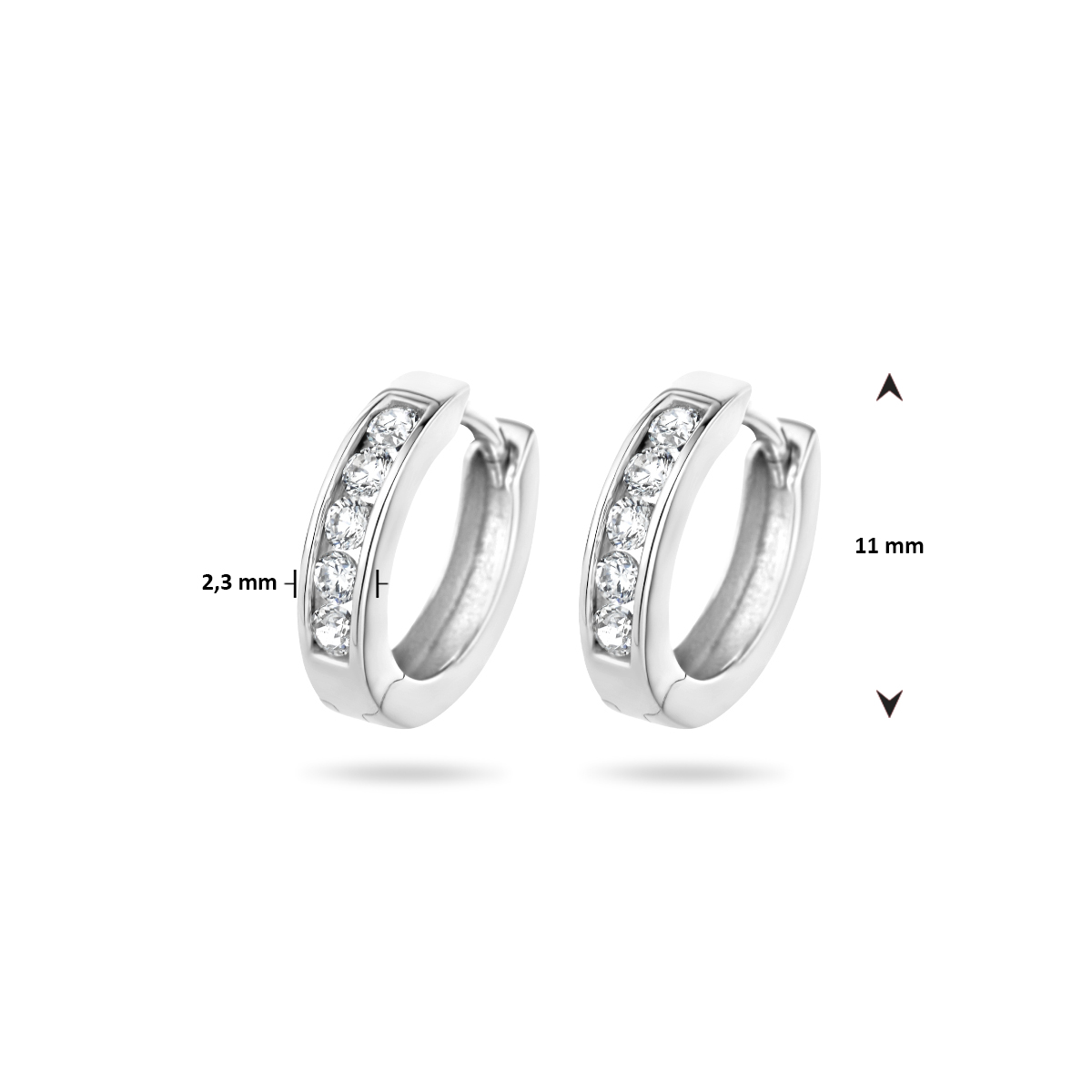 Beschrijving: Gerhodineerd zilveren klapcreolen met zirkonia.