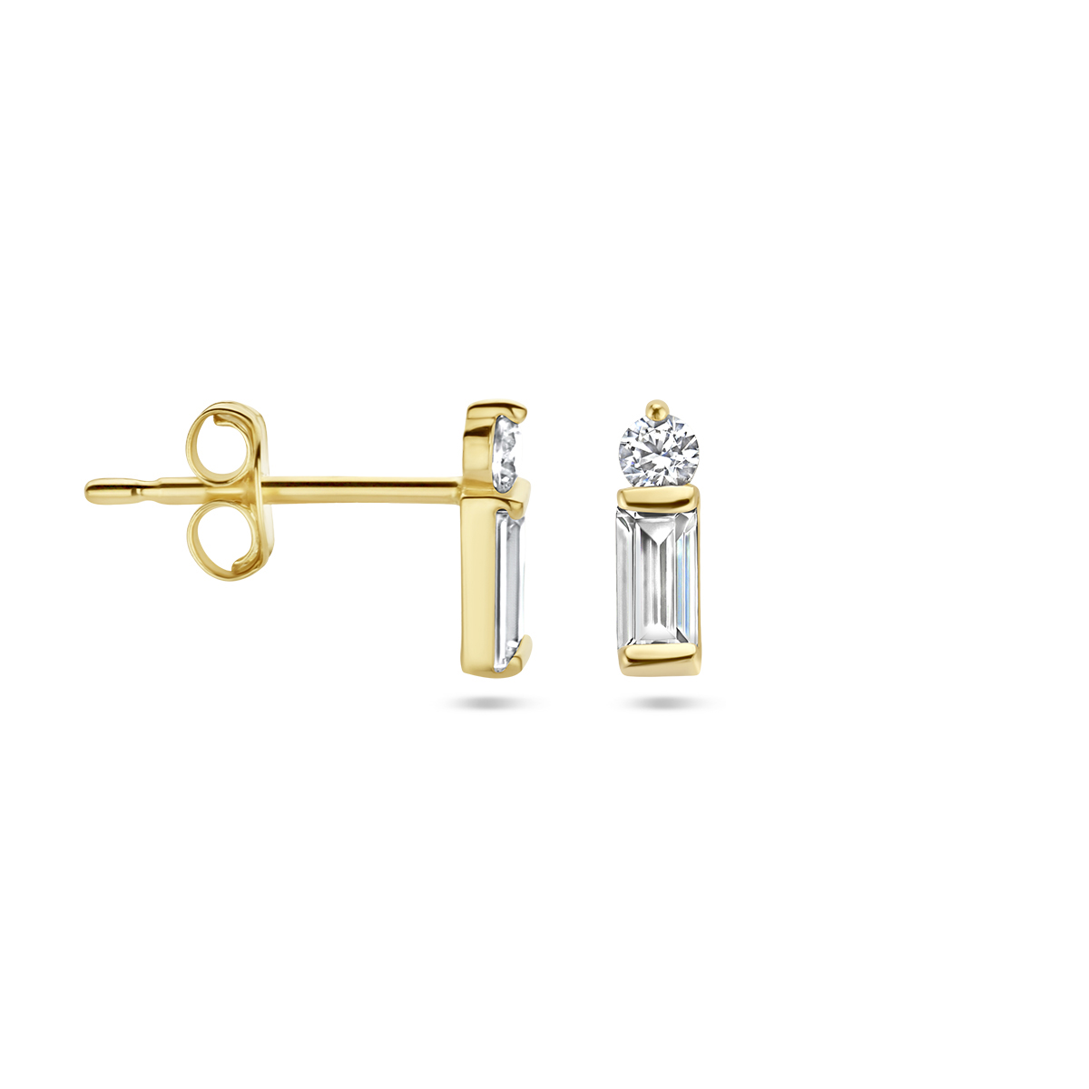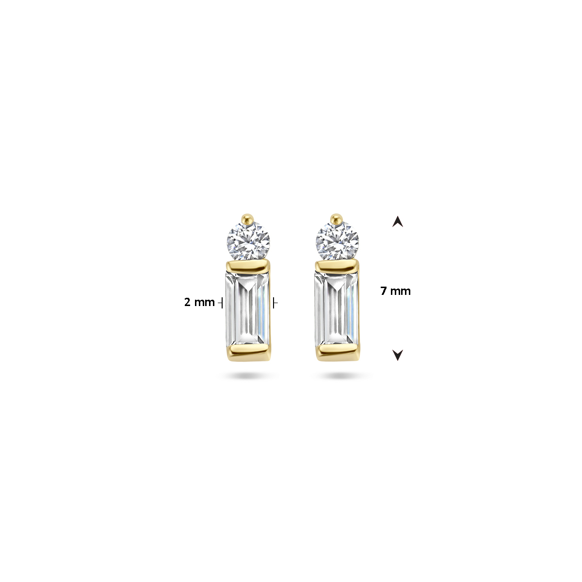 14k Geelgouden oorknoppen uitgevoerd met zirkonia. De oorknoppen hebben een afmeting van 7x2mm.