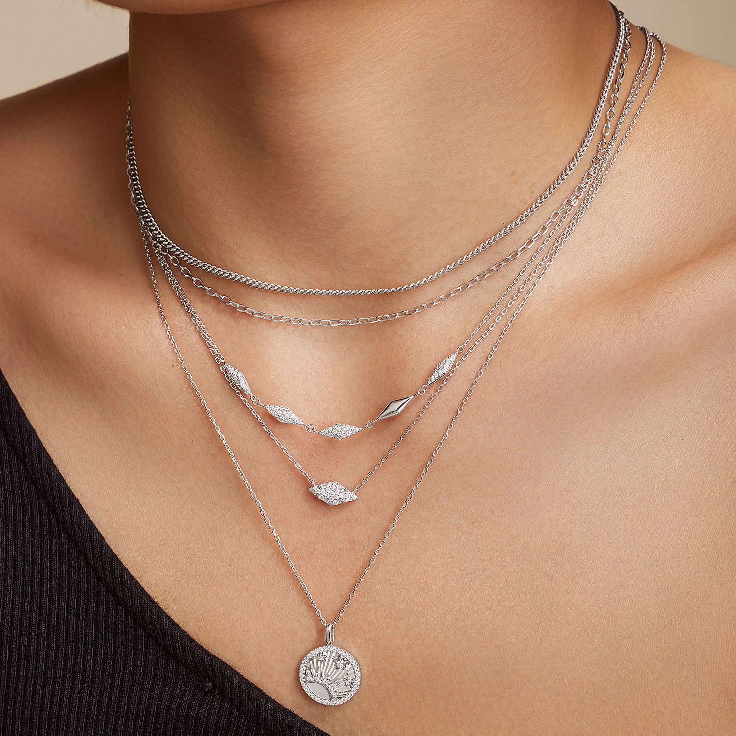 Omarm de hardwaretrend van dit seizoen met een vleugje glamour door deze prachtige schakelketting. Doordrenkt met schitterende zirkonia steentjes, bieden deze stukken een luxueuze update aan je alledaagse look. Geschikt om een verfijnde glans toe te voegen aan je kleding voor overdag of om je avondensemble mee op te fleuren. De delicate ketting brengt verfijning prachtig in balans met een vleugje sprankeling.