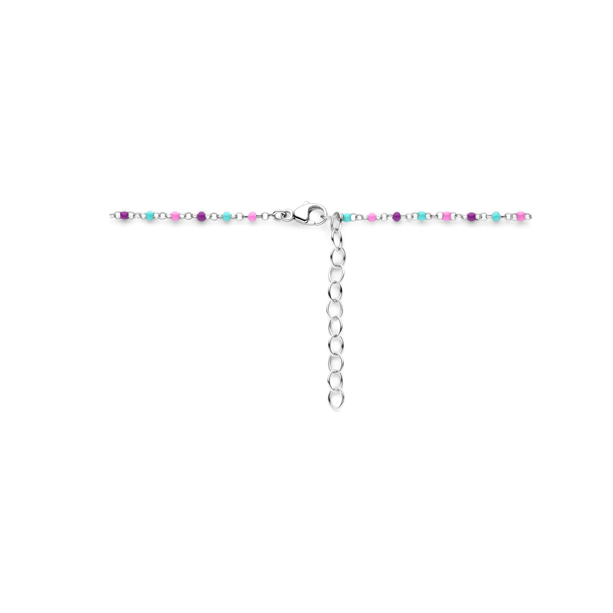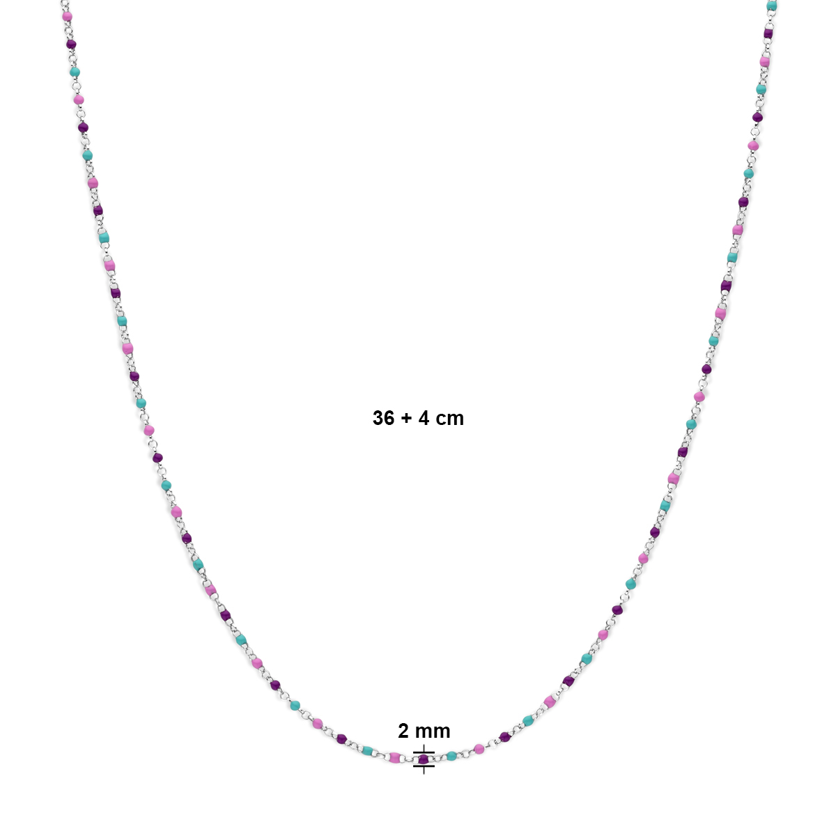 Gerhodineerd 925 zilveren collier uitgevoerd met emaille bolletjes. Het collier heeft een draaglengte van 36cm en een extensie van 4cm. Uitgevoerd met karabijnsluiting. De schakelbreedte is 1.7mm.